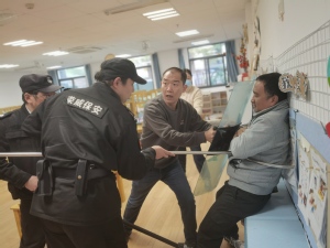 培训最后,全体安保人员参与了突发伤害事件应急演练,模拟“歹徒闯入班级”情境,安保人员迅速响应,紧密配合,运用所学技巧与防爆设备成功制服“歹徒”,有效检验了培训成果,增强了安保团队面对突发伤害事件的防范与处置能力。