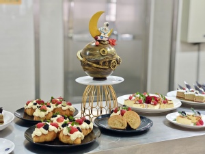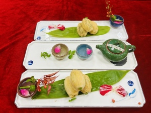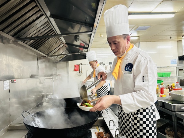 决赛现场,红案、白案和西点三项同步展开,150分钟内,红案选手需完成指定菜肴、午餐套餐、主题拼盘各一道,白案选手需完成指定面点两道和明酥点心一道,西点选手需完成指定西点一道和自选西点两道。参赛选手们纷纷拿出看家本领,一盘盘“舌尖上的美味”惊艳亮相。