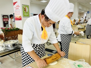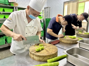 饮食服务中心积极响应集团作风强化年工作部署,积极推进“全员大练兵”工作,营造“比学赶帮超”氛围。自本学期起,饮食服务中心结合实际工作需求,开展了系统的厨艺技能赛前集训。9月24日至9月27日,三校区15个食堂分别开展理论和实操预赛。理论考核为闭卷笔试,内容涉及专业技能知识、安全生产规范、食堂运营状况和集团服务理念等方面。实操考核要求选手在规定时间内完成主题拼盘、指定品种、套餐制作和自选品种,全面考核选手在烹饪、刀工、色彩搭配、艺术造型、器皿选择等综合技能。最终有25名红案厨师、8名白案厨师和5名西点厨师进入决赛。