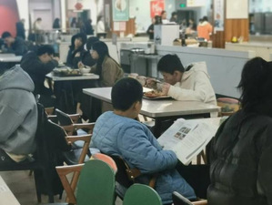 考研自习室开放第一天,不少同学吃完饭后就留在食堂继续奋战学习。食堂增加了消杀、打扫的频次,并要求工作人员减少噪音,保证同学们良好整洁的学习环境。