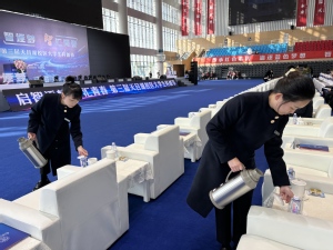 环境卫生方面,中心提前对各个区域进行责任分工,按照标准化规定流程做好卫生清理工作,对会议主馆场地、贵宾室、会议室、洗手间等区域进行全面清洁,根据现场情况延长保洁时间、增加保洁频次,扎实做好活动保障相关工作。