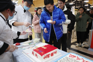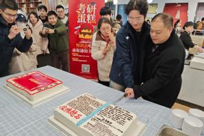 为支持学校学风建设,助力学子考研,12月19日饮食服务中心与学生资助管理中心联合在将军路、明故宫和天目湖三个校区食堂同步举行“知识点吃透,录取通知书在手”共切考研蛋糕活动,邀请在“爱心能量早餐”活动中连续打卡20天和领取星光奖励的同学到现场共同切蛋糕,预祝考研顺利。