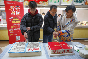切好蛋糕后,大家纷纷领取属于自己的独特考研蛋糕,短短20分钟,两大块蛋糕分发结束。有同学兴奋地说“吃了知识点蛋糕,不会的知识点也就要轻松攻克了!”甜甜的蛋糕带给同学们轻松备考的氛围,缓解了考研压力,大家都表示对即将到来的考研增加了信心。