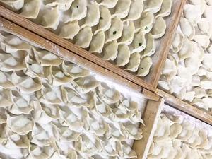 屋外的寒意抵不过屋内大家的热情,活动一开始,员工们便主动聚在一起,有序分工,切菜、拌馅儿、备调料、擀面皮……大家一边准备饺子一边聊家常,现场其乐融融,笑声不断,没一会儿桌子上就铺满了一个个圆鼓鼓的饺子。