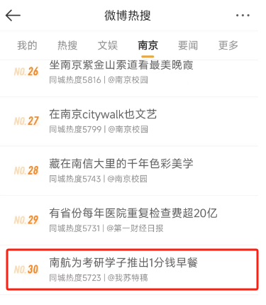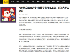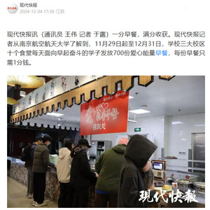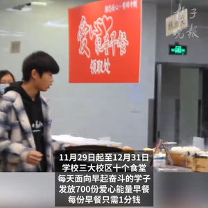 为深入学习贯彻习近平总书记关于教育的重要论述,认真落实学校高质量发展要求以及立德树人根本任务,后勤集团积极行动、主动作为,积极统筹后勤育人资源和育人力量,筑牢服务育人阵地。学校食堂自2013年起持续举办“励志早餐”计划,如今已经升级为“爱心能量早餐”继续进行,每天精心搭配700份寓意美好的早餐面向所有学生,只需一分钱即可领取。此举受到学生的广泛好评,同时也得到了央视等主流媒体的关注报道。中国青年网、搜狐网、现代快报、扬子晚报、江苏省广播电视总台、南京广播电视台等媒体进行了集中报道,“南航为考研学子推出1分钱早餐”词条登上微博热搜。