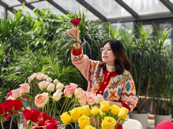 活动伊始,中心绿化技术员史欣玥为大家介绍本次活动所用的花材。热情似火的红玫、浓郁深沉的高原红、清新脱俗的艾莎、明媚灿烂的黄玫,每一朵都鲜艳欲滴,散发着迷人的芬芳,吸引着大家的目光。伴随着史欣玥的讲解与演示,花艺创作之旅正式开启。