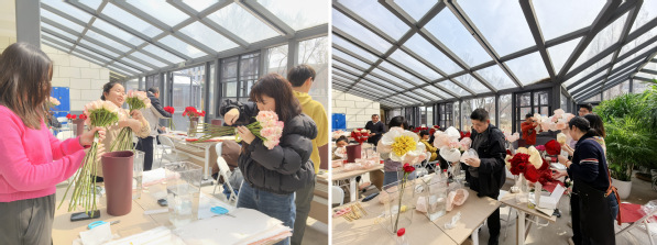 在这个春意盎然的美好时节,为丰富中心员工精神文化生活,提升艺术修养,增强团队凝聚力,2月26日下午,校园服务中心组织开展了以“缤纷花艺,凝心聚力”为主题的春季花艺沙龙团建活动。
