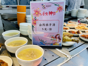 大家在美食中感受到了浓浓的节日氛围和食堂员工真挚的情意,师生纷纷反馈:每年妇女节食堂都会特别准备节日菜肴,既有生活的仪式感,又饱含着暖心周到的服务。