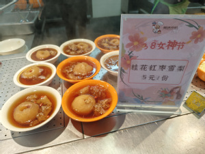 通过到食堂进行现场调研及线上咨询反馈,饮食服务中心精心拟定了以甜蜜、花果为基调的初步选样,经食堂制作样品并进行筛选后,确定了最终呈现的精选菜单。考虑到3月8日是周六,为了让更多师生能够在这个节日里品尝到专属的美味与甜蜜,中心在3月7日到8日两天同步推出妇女节系列菜品。无论是香甜可口的桂花红枣烤雪梨、银耳西米火龙果羹、杨枝甘露,还是醇香甜蜜的樱花红豆包、玫瑰花酥、草莓慕斯,又或是营养美味的果味龙利鱼、山药鸽子汤等菜品,都饱含着食堂员工们深深的节日祝福。