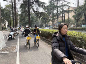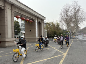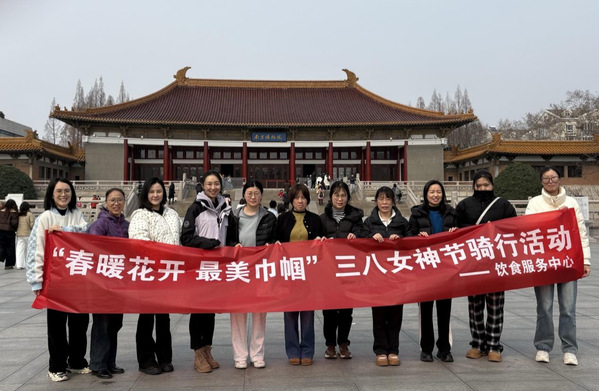 当天中午,利用午休时间,中心组织了一场别开生面的骑行活动,特别邀请了二线女职工参与。她们在明故宫校区大西门集合,迎着初春的微风,踏上了前往南京博物院的旅程。骑行路上她们精神抖擞、热情高涨,享受着骑行乐趣的同时也欣赏着沿途的春日美景,在一路欢声笑语中顺利抵达南京博物院。这座承载六朝古都文明印记的国家一级博物馆,为平日忙于案头工作的女职工们打开了感知历史的新窗口。