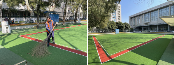 此前,因种种原因,明故宫校区体育馆北边650㎡的门球场卫生保洁一直处于缺位状态,加之重新改造后地面铺设了特殊材质,卫生清扫较为繁琐。今年以来,经国资处、离退休处和后勤集团多次协商,本着服务师生,营造优美校园环境的原则,集团主动担当作为,承接了该区域的卫生保洁工作,由校园服务中心具体实施。半个月以来,该区域始终保持干净整洁的面貌,得到离退休老同志的一致赞许。