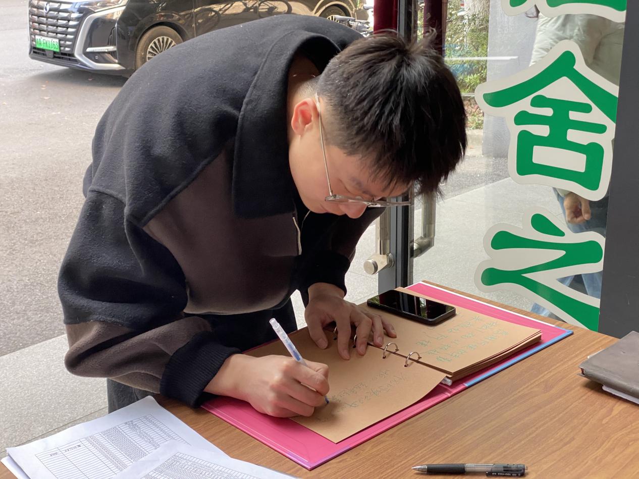 学生公寓门厅内的留言墙以及毕业纪念册前,有人执笔凝思,墨迹在信笺上晕开温柔的涟漪;有人手绘漫画,将情感定格成永恒;也有公寓阿姨展开信笺,逐行细读那些写着“阿姨们再见”话语,悄悄红了眼。这场“纸短情长·青春留痕”活动,让毕业生们的手写留言化作校园里最柔软的告别诗行。