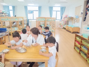 最后,代表们一同返回,全程跟访午餐配送流程。家长代表进入班级参加陪餐,她们走进班级亲身体验班级就餐规则、品尝餐品,充分了解幼儿饭菜的口感与营养搭配情况。