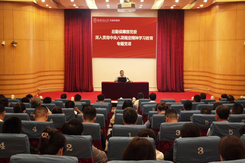 5月15日,后勤保障部党委书记张海艮以《联系思想实际工作职责 深入贯彻落实中央八项规定精神》为题讲授专题党课,后勤保障部、校医院领导班子成员,全体党员、发展对象、入党积极分子参加学习。