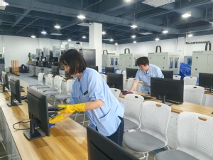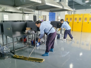 为切实满足各使用单位需求,中心立足不同业态特点,深入调研分析,精心制定了科学详实的开荒保洁方案。知行楼工培实验中心的保洁工作面临诸多挑战,因其精密仪器众多、功能分区繁杂。中心第一时间与使用单位展开深入沟通,全面了解学院的保洁诉求,针对该区域的特殊性,围绕实验室操作台的清洁规范、公共区域设施设备的维护要点等,量身定制精细化开荒保洁方案。方案对物资筹备、人员调配、区域分工、作业标准及时间进度等方面都作出了明确规定。在教师公寓与培训中心的开荒保洁工作中,中心对标酒店式服务标准,依据房间、阳台、卫生间等不同区域的硬件条件,制定了细致入微的保洁准则。同时,中心始终将员工安全放在重要位置,在涉及登高作业等环节,着重强调安全操作规范,全方位筑牢开荒保洁工作的安全防线。