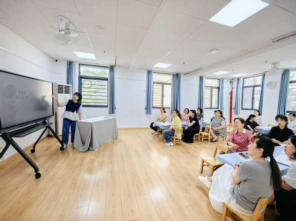 活动中,王宁萍主要从参加专业竞赛和撰写专业文章两方面跟老师们进行分享。专业竞赛方面,围绕“区青优评选”和“基本功大赛”的备考、备赛,从备考计划制定、知识体系梳理、心态调整技巧等方面,结合自身经历,分享了高效实用的备赛策略。专业文章方面,围绕论文与案例写作,她以清晰的逻辑和生动的案例,细致讲解了选题方法、写作框架、语言表达等关键要点,为教提供了可借鉴的写作思路,有效解决了大家在日常教研写作中的困惑。