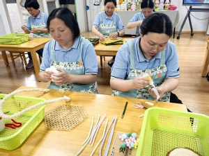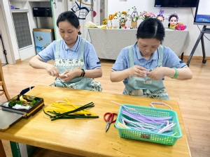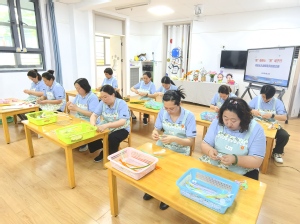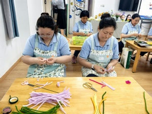 巧手扭趣,绽放创意之光:毛根(扭扭棒)创意制作中,保育老师们化身“艺术创作者”,以色彩斑斓的扭扭棒为主材,搭配珠子、眼睛贴等配件,凭借灵巧双手与奇思妙想,快速创作出小动物、花朵、卡通人物等造型各异的手工作品。童趣满满的作品不仅展现了保育老师们的创意能力,更为幼儿手工教学提供了鲜活范例。