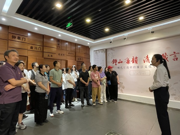 明孝陵博物馆立足资源优势,以《钟山廉韵,清风箴言——明代官箴中的廉洁文化专题展》为主题,深入挖掘梳理明史中的廉洁元素,以丰富的历史资料和生动的图文,展现了明代清官廉吏的廉洁故事。大家在讲解员的带领下,认真聆听每一个廉洁故事,深刻体会明代官箴中的廉洁精神。