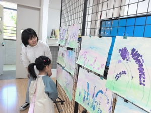 小班美术:“盛开的薰衣草”:王宁萍教师借助图片,引导孩子们细致观察薰衣草的形态特征与浪漫色彩。随后,孩子们借助水彩和蜡笔等工具,通过勾勒与点画的技法,创作出各具特色的薰衣草花田,在动手实践中体验美术创作的乐趣。