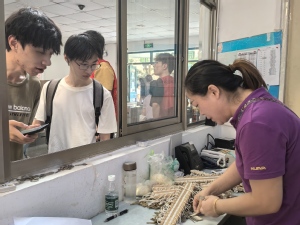 在各校区,后勤保障部还设立了“能量补给站”,为搬迁师生及工作人员提供清凉饮品和补给食物,帮助他们驱散炎热与疲惫。公寓服务中心精心安排了入住信息普及工作,现场向同学们普及日常报修、热水供应、空调使用等宿舍日常管理服务信息,帮助他们快速融入新环境。宿舍管理员也在现场维护搬迁秩序,为同学们提供指引服务,答疑解惑,助力搬迁学生顺利过渡。