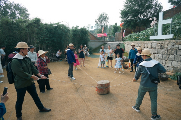 为让红色记忆更可触可感,培训特别设置沉浸式体验环节。参训党员们换上复刻的修渠年代粗布工装,化身“修渠人”参与情景表演,大家通过扮演修渠的亲历者、见证者,走进修渠的决策、施工、攻坚等各个环节,从一把锤、一辆独轮车、一挑担子中感受当年林县人民修渠的艰辛与刚毅。党员们还走进红旗渠发电站,实地了解水电站为林州市的发展做出的重要贡献,深度体会红旗渠这一伟大工程的历史意义和时代价值。
