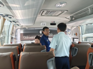 领导们深入食堂、公寓、车队、快递超市、花房、电站、幼儿园等地,每到一处都与职工亲切握手攀谈,并详细了解暑期各项保障工作开展情况。在食堂,领导们仔细询问了暑期供餐情况,叮嘱要严把食品安全关;在学生公寓,领导们详细了解留校学生住宿情况和空调安装、使用情况,要求做好各项服务工作;在车队,领导们登上新引进的大巴车,了解车辆的安全设施、座椅配置情况,要求加强车辆维护管理,确保师生出行安全;在电站,领导们重点了解了各校区用电载荷情况,强调要确保暑期水电供应安全稳定……