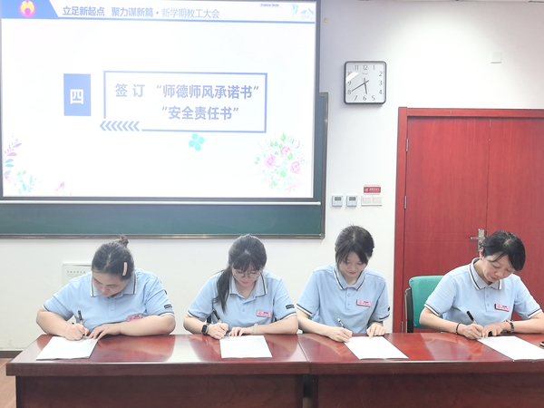 宣誓仪式后,全体教职工签订“师德师风承诺书”与“安全责任书”,进一步明确了教师在师德师风与安全工作方面的责任,促使大家以更高的标准要求自己,切实履行好岗位职责。