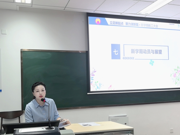 新学期工作会上,幼教中心主任陈慧云回顾上一学期工作成效。并结合教育发展新形势与幼儿园实际,明确新学期工作目标,从“服务质量”“管理机制”“日常规范”“安全卫生”四大重点工作事项着手,号召全体教职工以“敢想、敢闯、敢拼”的精神,积极应对挑战,共同为新学期各项工作开好局,推动幼儿园发展再上新台阶。