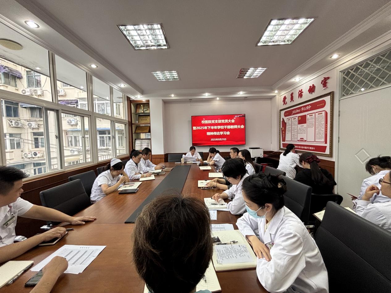 为深入贯彻落实学校第八届教职工代表大会第五次会议暨2025年下半年干部教师大会精神,切实将思想与行动统一到学校发展决策部署上来,9月25日下午,校医院党支部召开专题学习会,集体学习校长姜斌在大会上所作的《决胜“十四五”蓄势“十五五”,以昂扬奋进姿态推动学校高质量发展》工作报告。会议由医院党支部书记陆晖主持,全体党员及内聘中层干部参会。