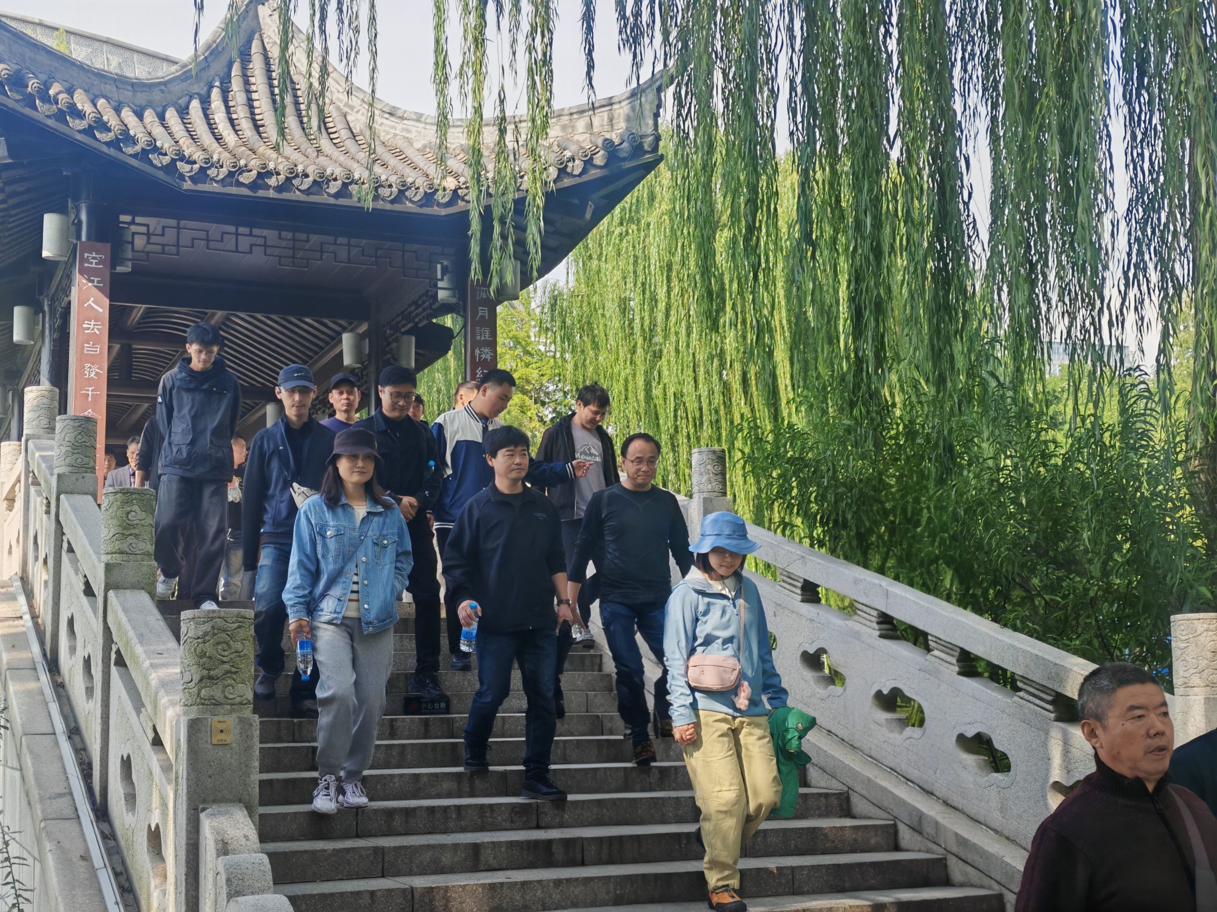 燕湖公园,宛如一颗镶嵌在城市之中的明珠,以其独特的自然风光和人文魅力,迎接来自不同校区的员工们。当大家踏入这片充满生机与诗意的土地时,立刻被眼前曲合有致、蜿蜒曲折、层次丰富的环湖景观带所吸引。员工们沿着环湖道路悠然漫步,队伍中不时传来欢声笑语。大家一边惬意地欣赏着湖光山色,一边畅聊工作中的趣事。那些在工作中忙碌的时刻,此刻都化作了轻松愉快的谈资。