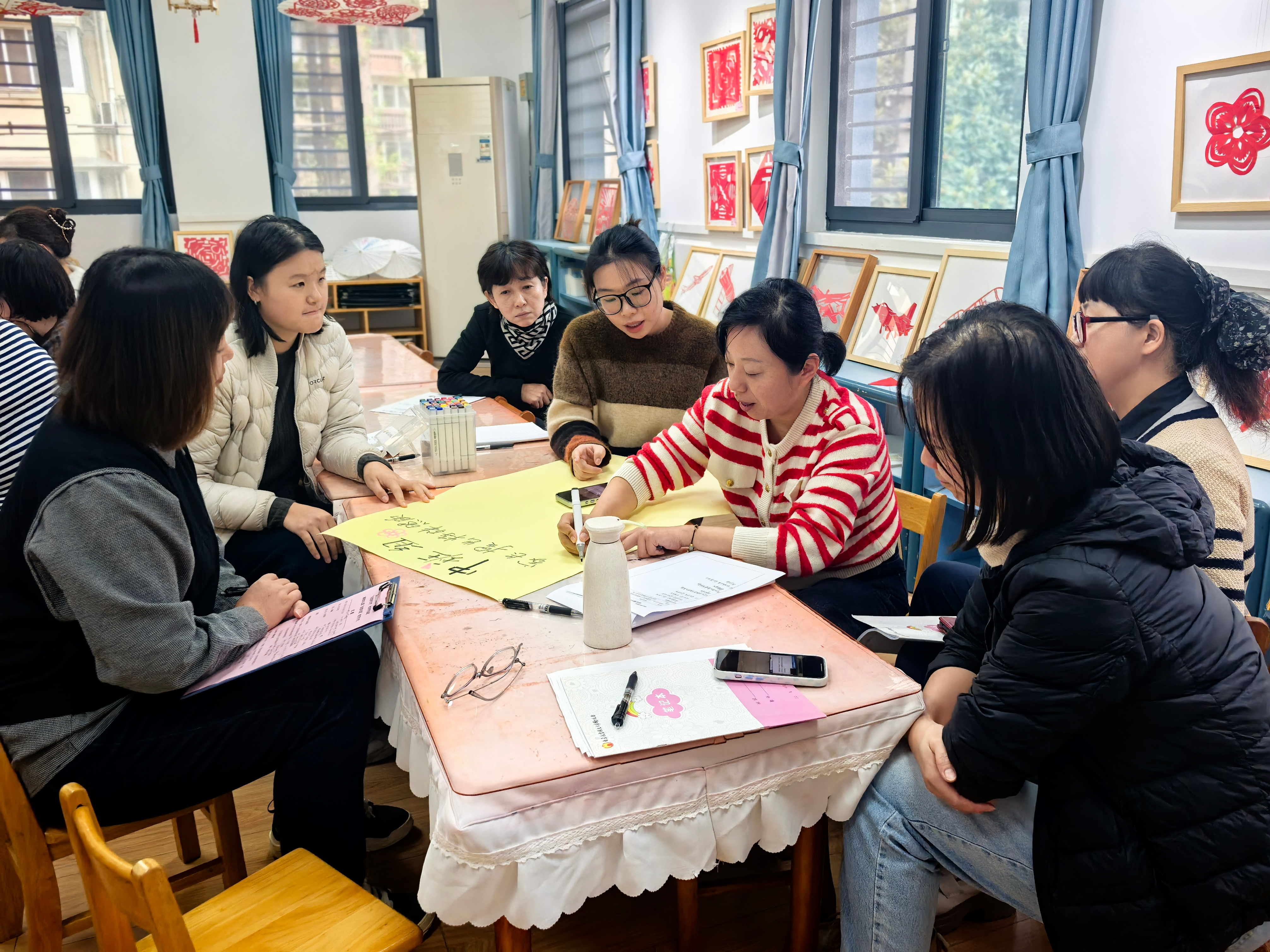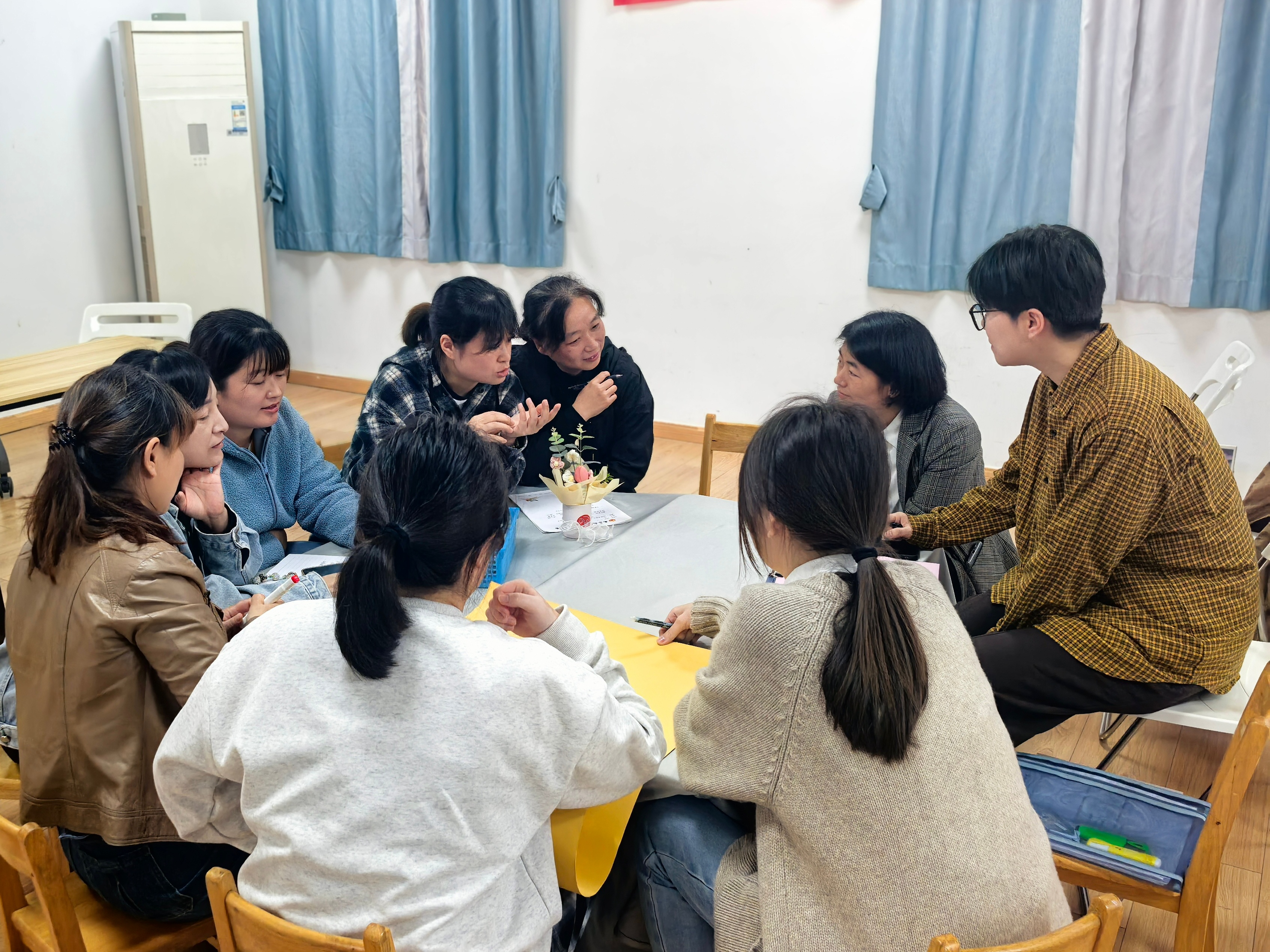 在研讨环节,教师们围绕“学会共情、专业引领、语言艺术”三大模块,结合情景案例展开热烈探讨。南京市第一幼儿园的三位教师深入各组,给予专业指导,帮助大家梳理沟通中的亮点与改进空间,共同提炼出可操作的沟通策略,推动理论知识向实践能力转化。