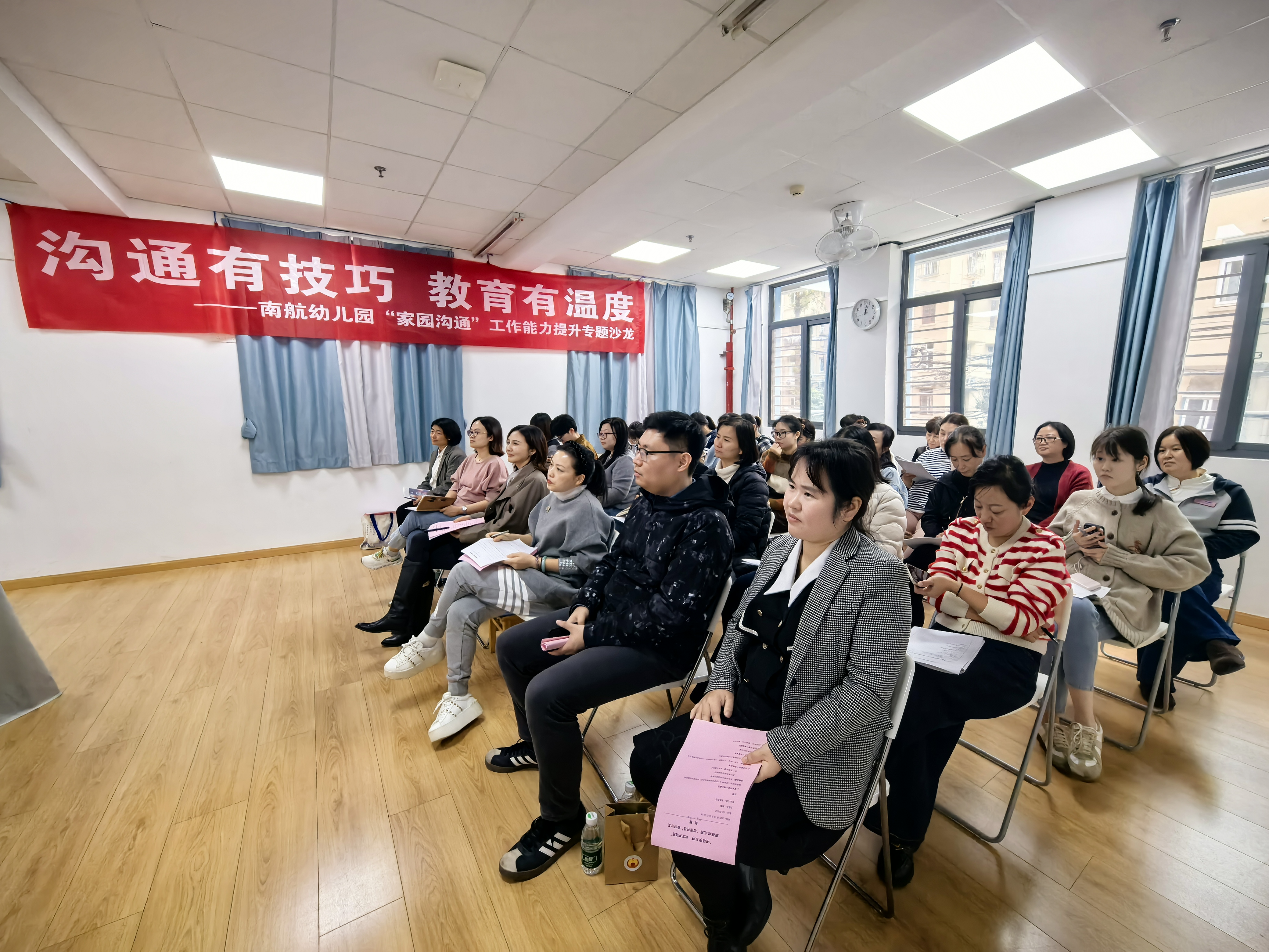为深化家园共育实践,提升教师沟通素养,营造温暖和谐的家园共育氛围,10月30日,南航幼儿园开展“家园沟通”工作能力提升专题沙龙。活动以“理论落地实践、情景锤炼能力”为主线,层层递进,助力教师专业成长。南京市第一幼儿园教科室主任史菁林及其团队,南航大后勤保障部部长助理李民惠,幼儿家长代表及全体教师共同参与,一起探索家园沟通的智慧与路径。