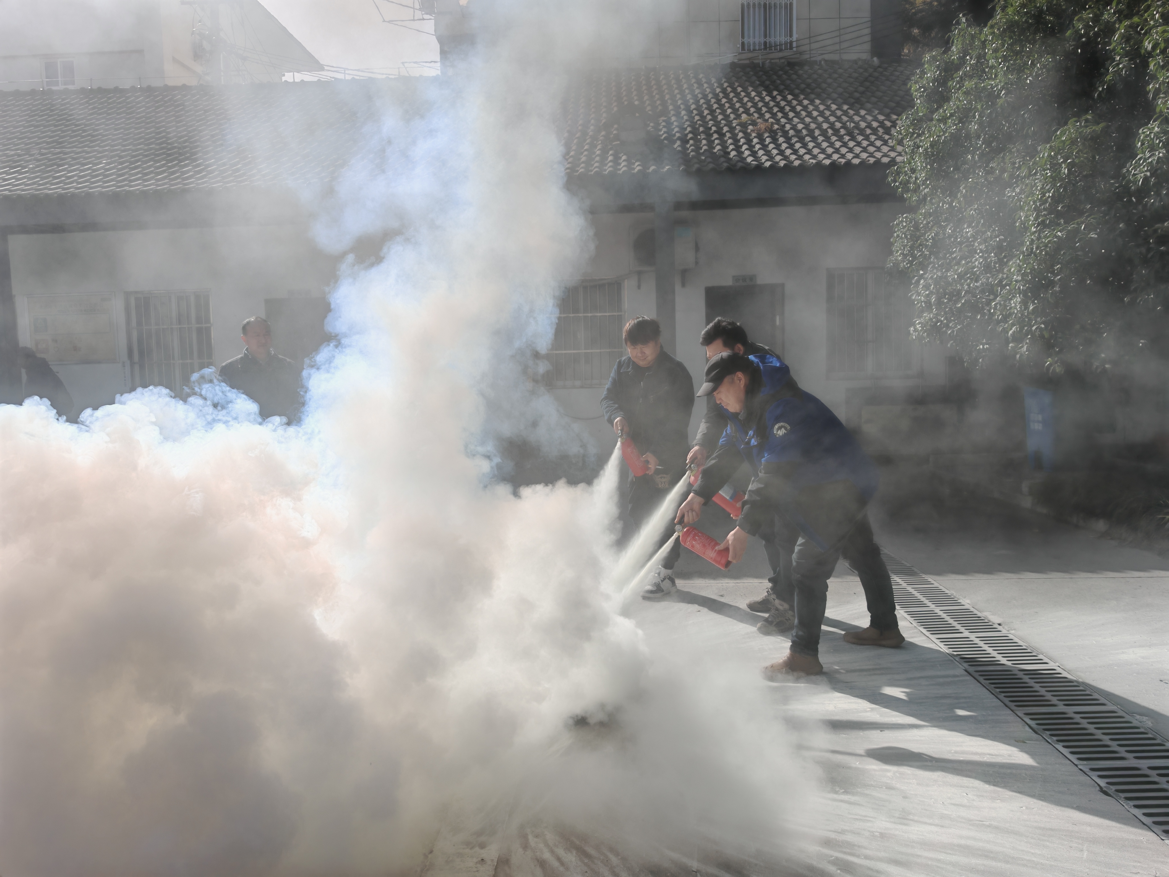 培训结束后,实战演练紧锣密鼓展开,分为“灭火实操”与“综合应急演练”两个阶段。在灭火实操环节,参训员工在安全员的现场指导下,依次上前实操,从“提灭火器”时保持平稳,到“拔保险销”时注意力度防止销体卡滞,再到“握喷管”时对准火源根部而非火苗顶部,最后“压手柄”时保持匀速喷射,每一个步骤都严格遵循规范。现场氛围紧张而有序,最终所有参训人员均能独立完成初起火灾扑救。