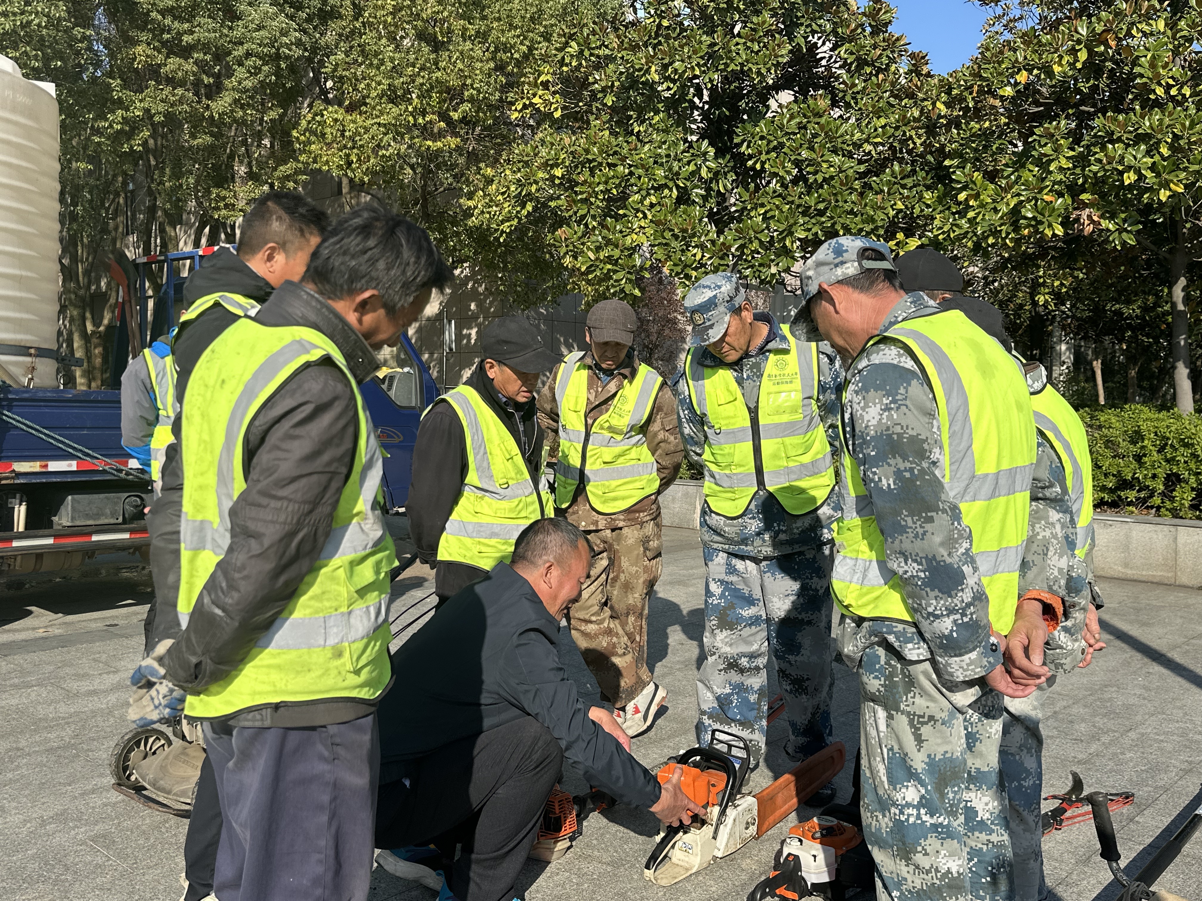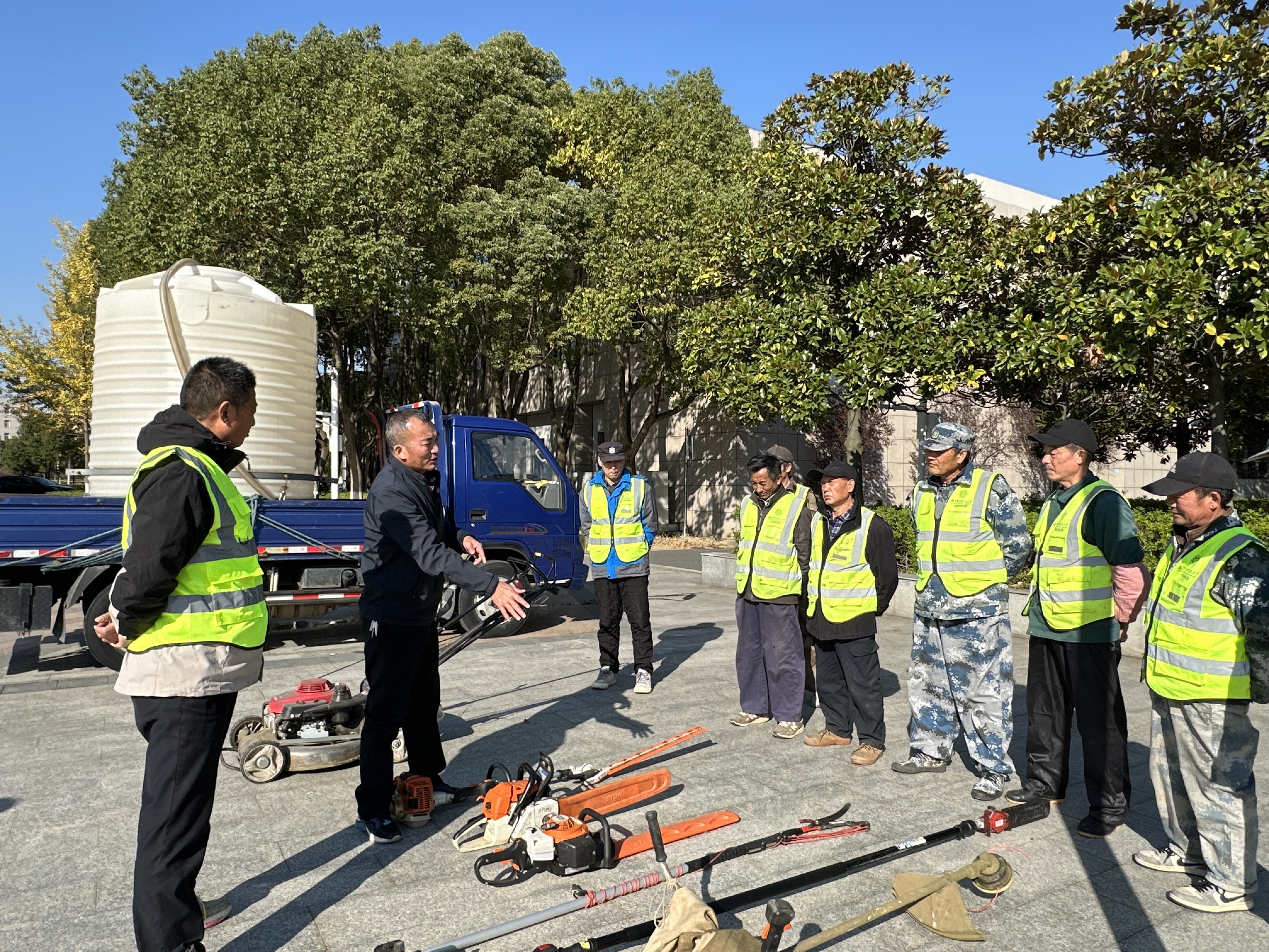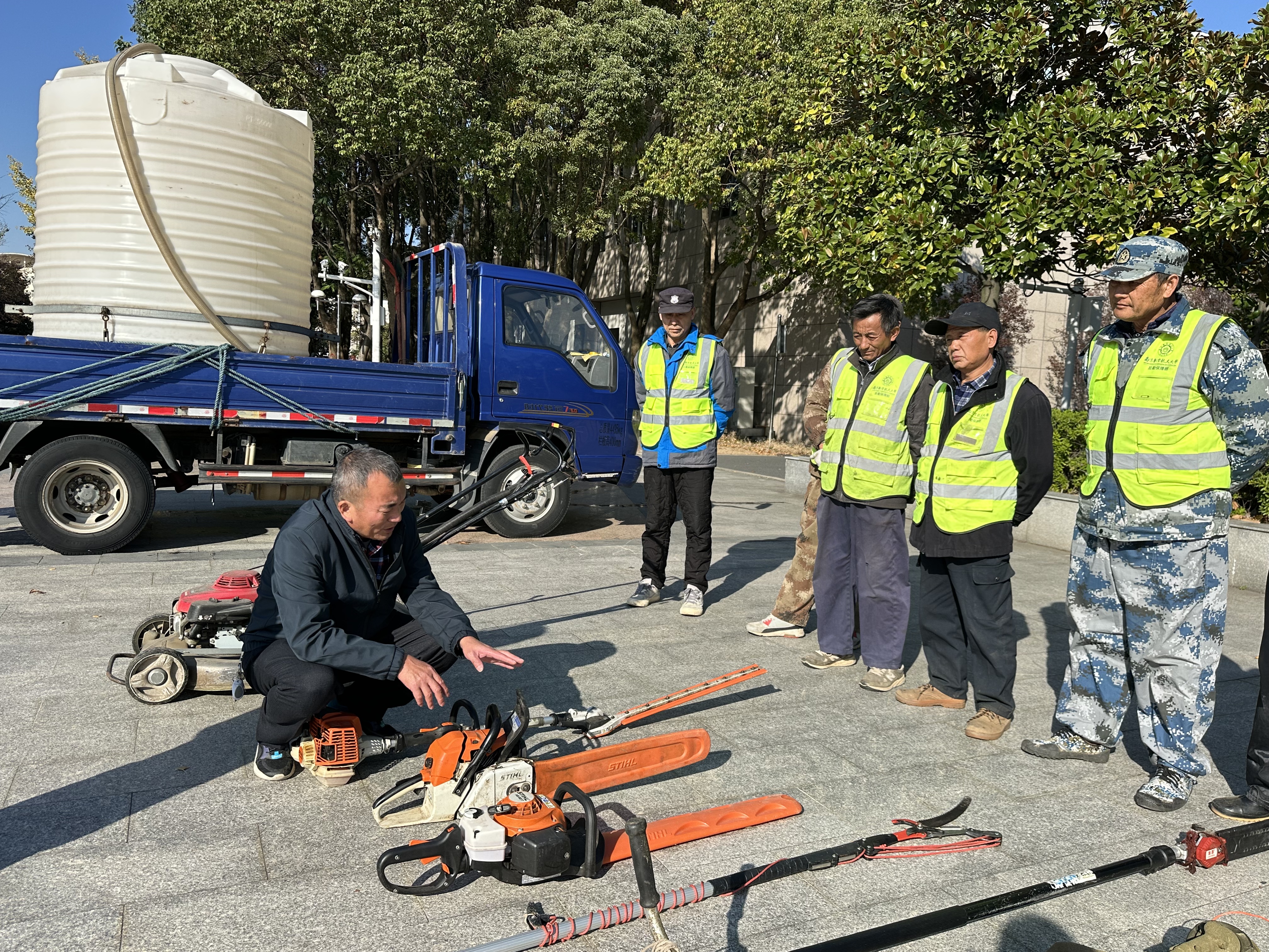 为强化中心绿化养护人员专业素养,规范园林设备操作流程,推动校园绿化精细化管养提质增效,近日,校园服务中心在将军路校区组织开展保洁、园林机械操作技能培训。中心主任助理、园林绿化高级技师魏声兵担任主讲,中心将军路校区绿化班组全体人员参训。