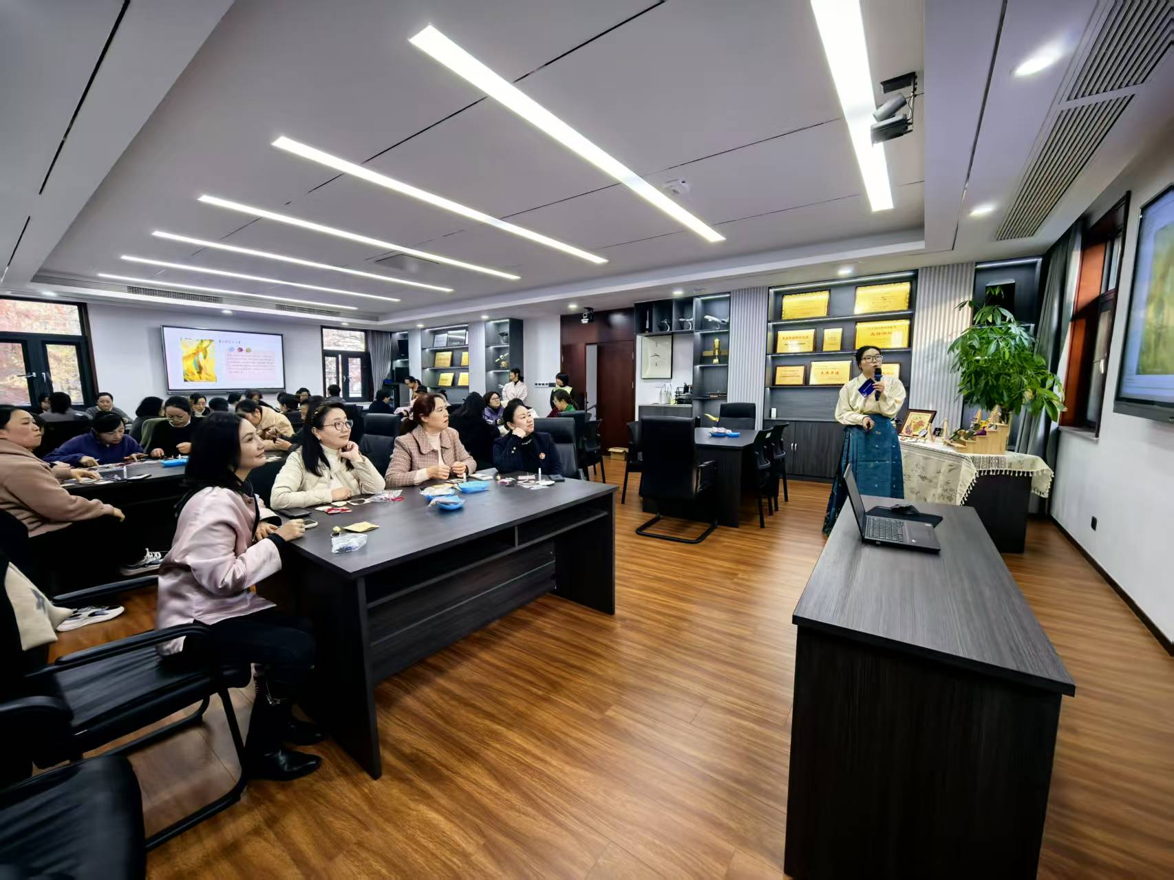 12月18日,后勤保障部工会联合幼教中心组织开展“前‘承’似锦,共筑新章”非遗宋锦挂饰制作体验活动。后勤保障部各单位职工齐聚一堂,在沉浸式手工制作中亲身感受非遗文化的独特魅力。活动由幼教中心教师苏静主持。