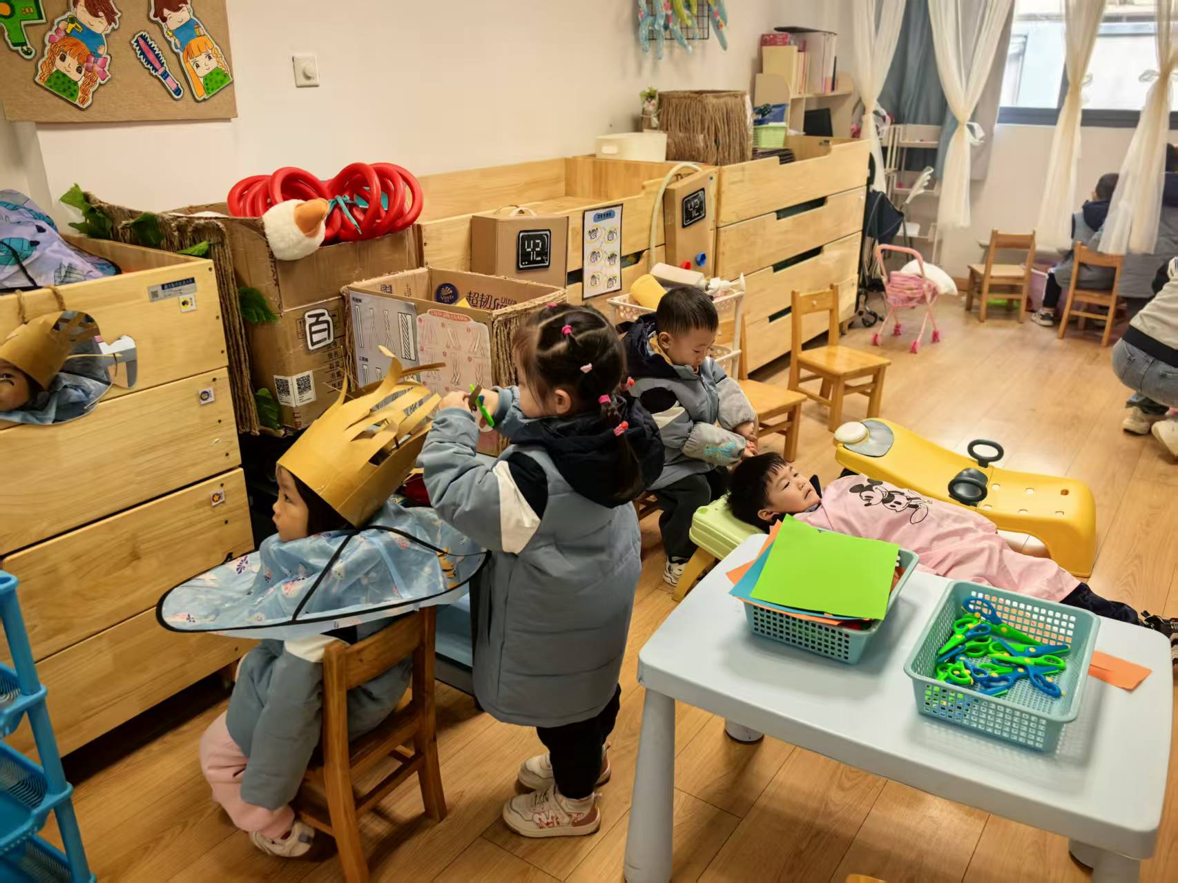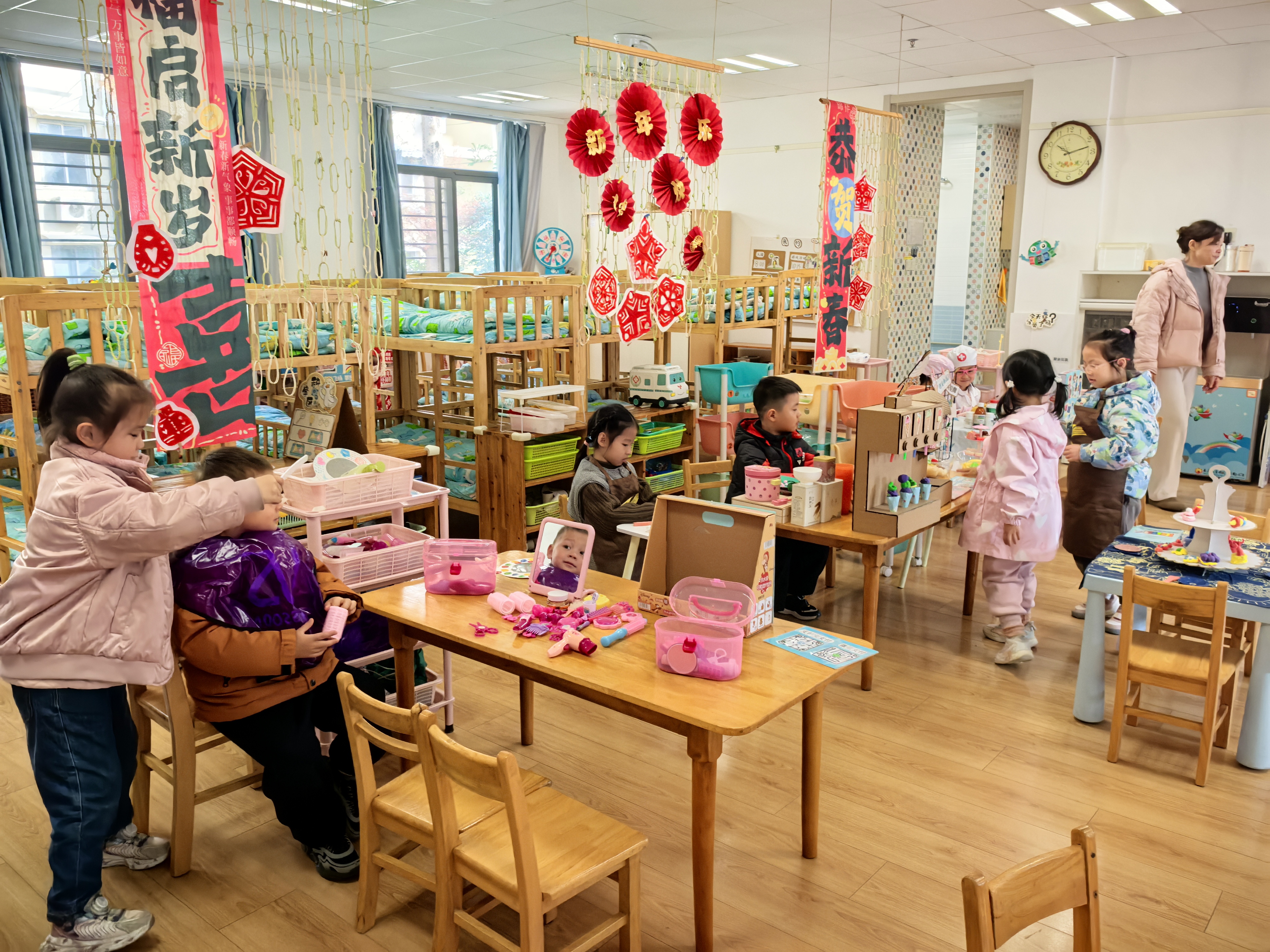 室内自主游戏评比环节中,各班依据幼儿兴趣与发展需要,创设角色区、建构区、美工区、益智区等丰富游戏场景。游戏过程中,教师坚持“放手不放眼”,在观察中适时以提问、建议支持幼儿深入游戏。幼儿自主选择、自由探索,有的扮演“小厨师”专注烹饪,有的合作搭建“城市高楼”,有的创作特色美工作品……在游戏中充分发挥想象与创造,真正成为游戏的主人。