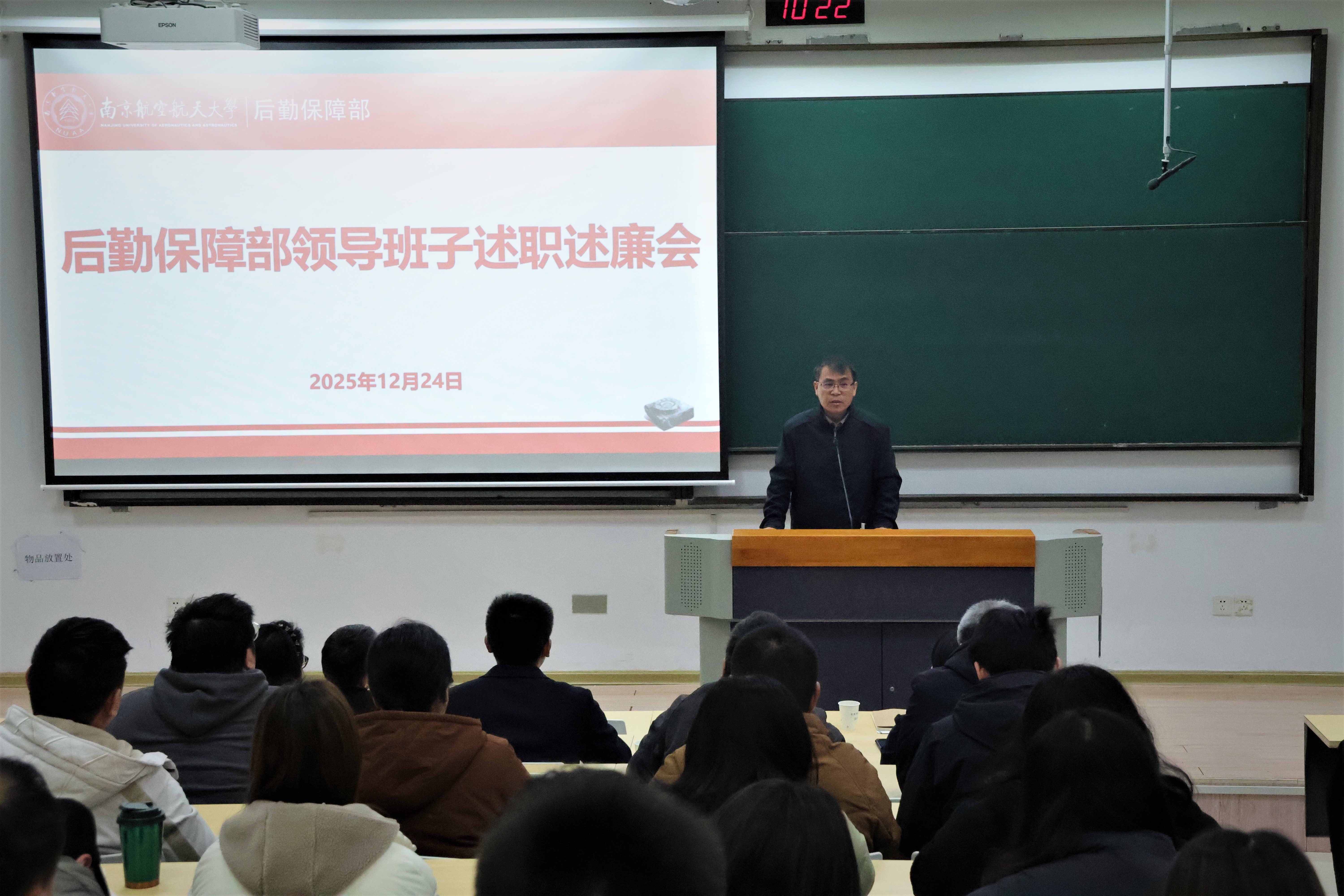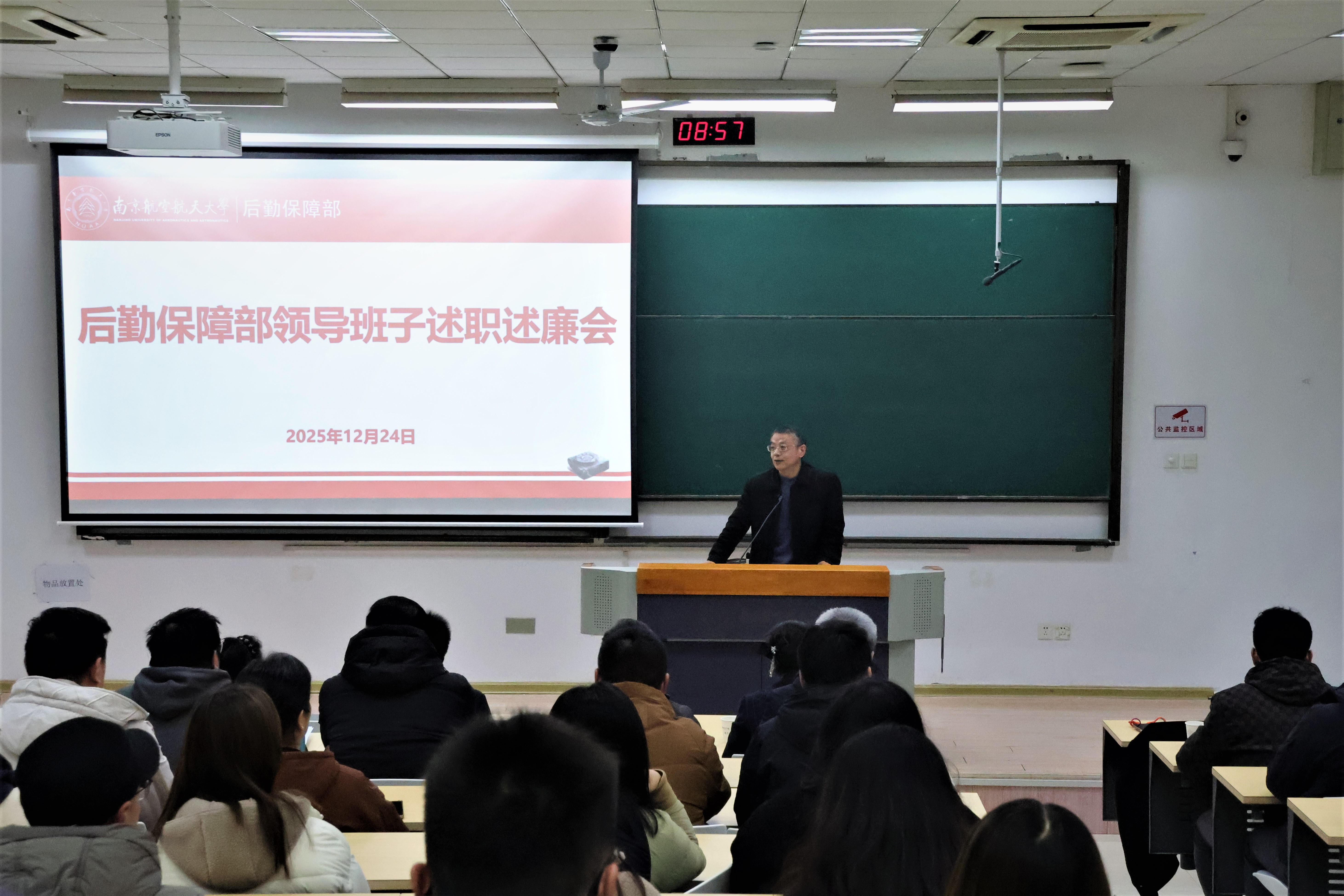 根据学校统一部署,12月24日上午,后勤保障部在明故宫校区召开2025年度领导班子述职述廉会。全体后勤保障部领导,各中心主任助理及以上人员、班组长、骨干代表等100余人参加会议。会议由党委书记张海艮主持。