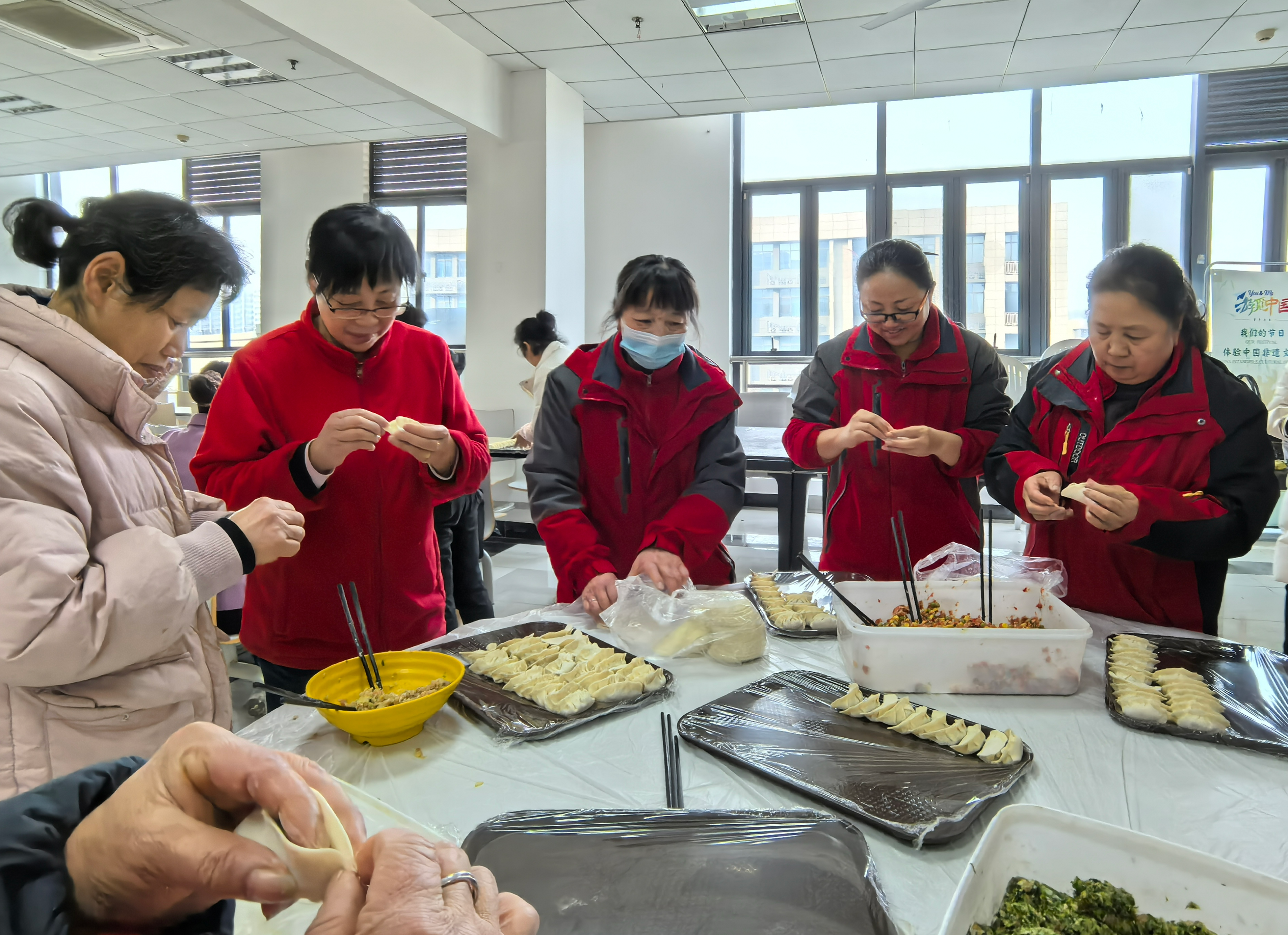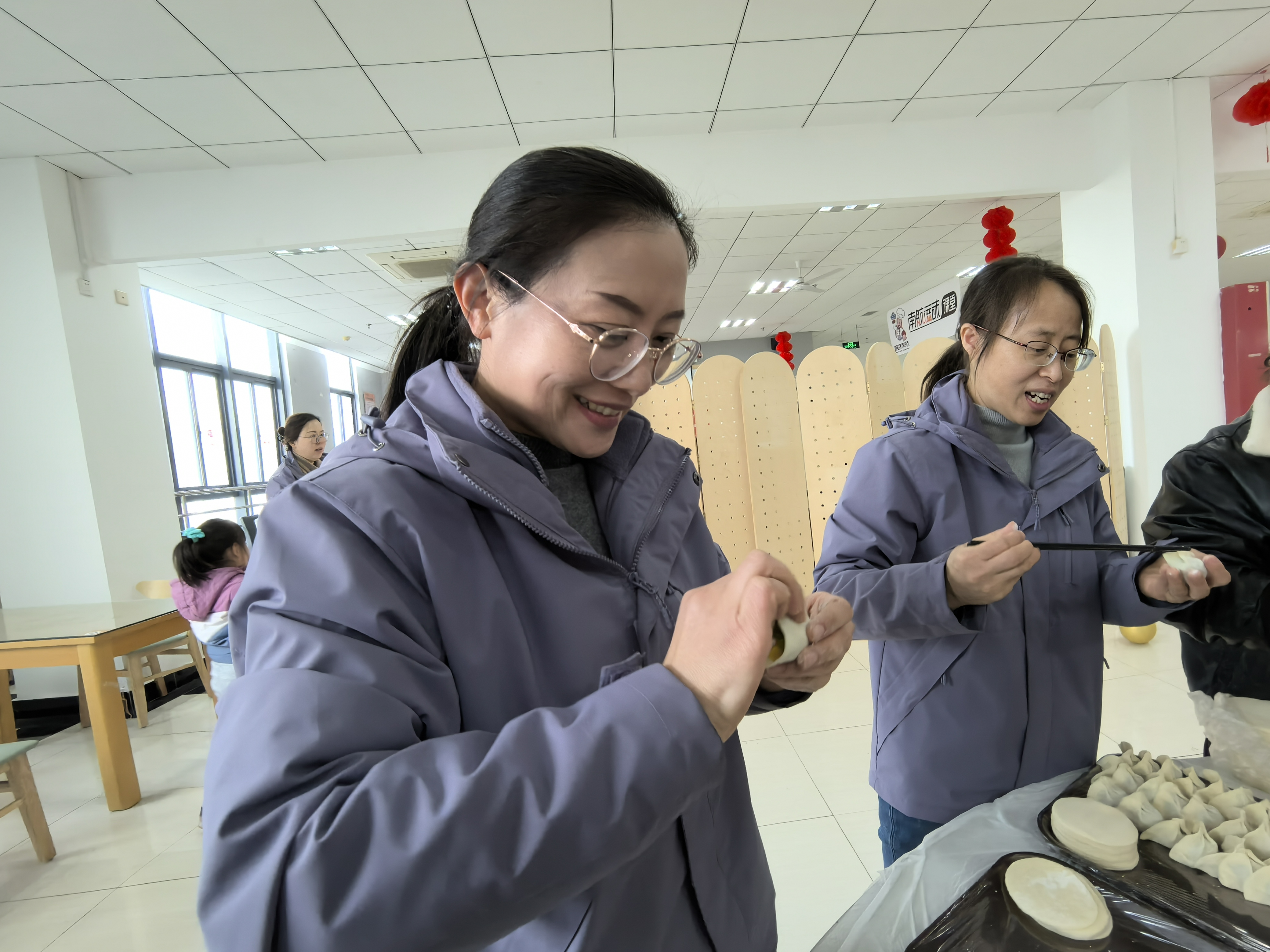 饺子是象征团圆与幸福的传统美食,承载着对过往的深情回忆和对未来的美好期许。在轻松愉悦的氛围中,大家纷纷展现出精湛手艺,享受包饺子的乐趣,比拼包饺子的技巧。一颗颗小巧玲珑、雪白饱满的饺子拉近了彼此的距离,让温暖在心间流淌,欢声笑语弥漫在活动现场。