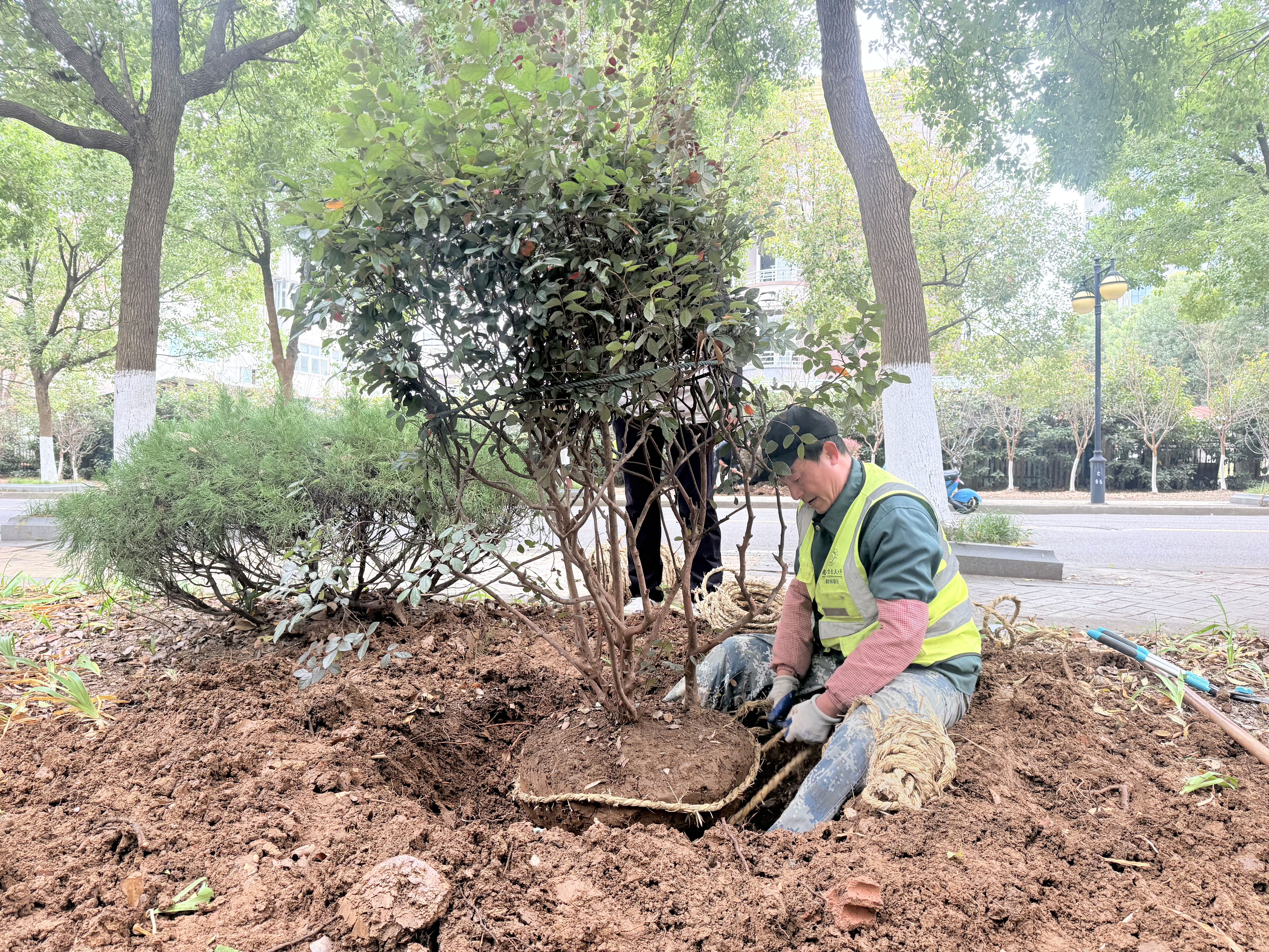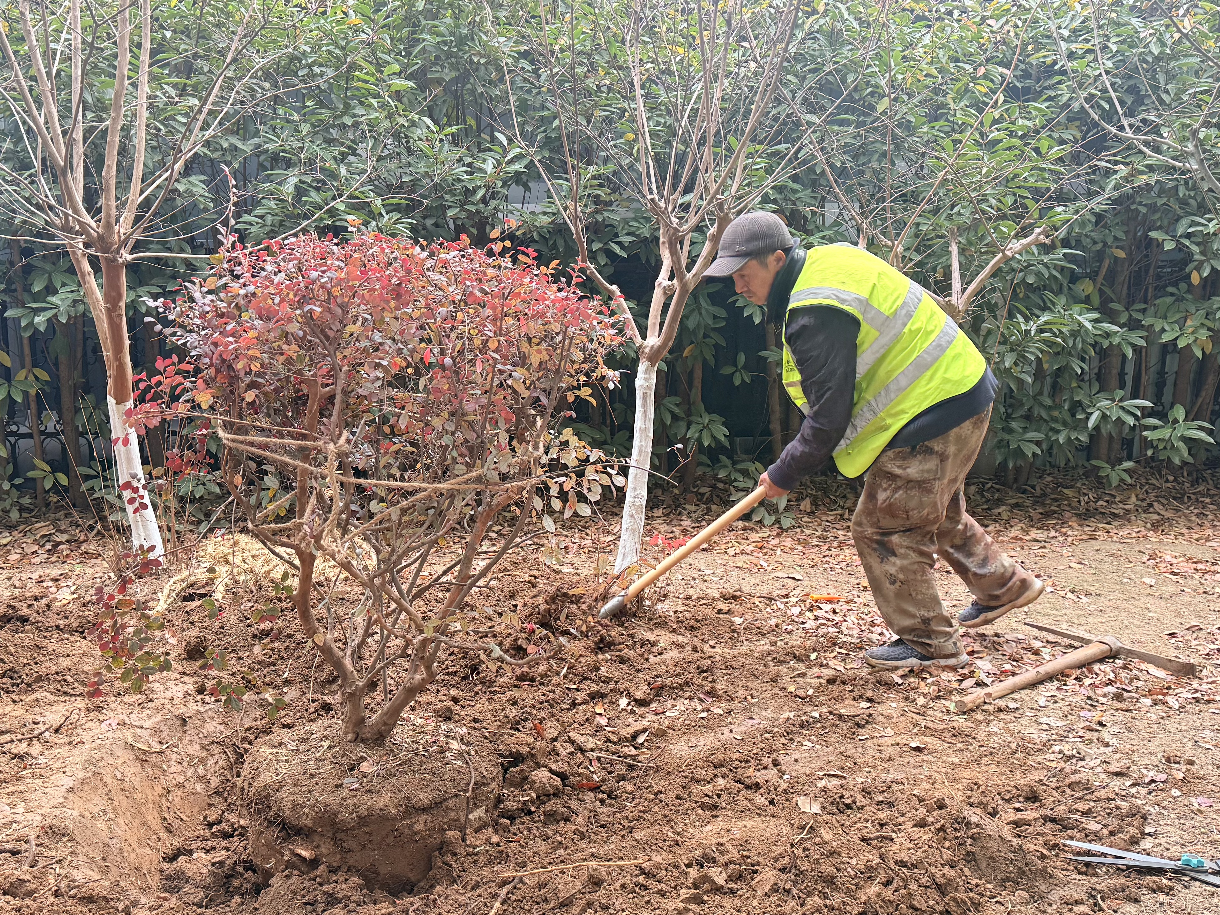 绿化技能比赛重点考察员工对球形灌木的移栽和造型能力,选取校园广泛种植的红花檵木球作为操作对象,要求参赛选手在规定时间内独立完成起挖、草绳打包、挖穴种植、缩冠修剪等步骤,全面校验其操作熟练度、流程规范性与细节把控力。