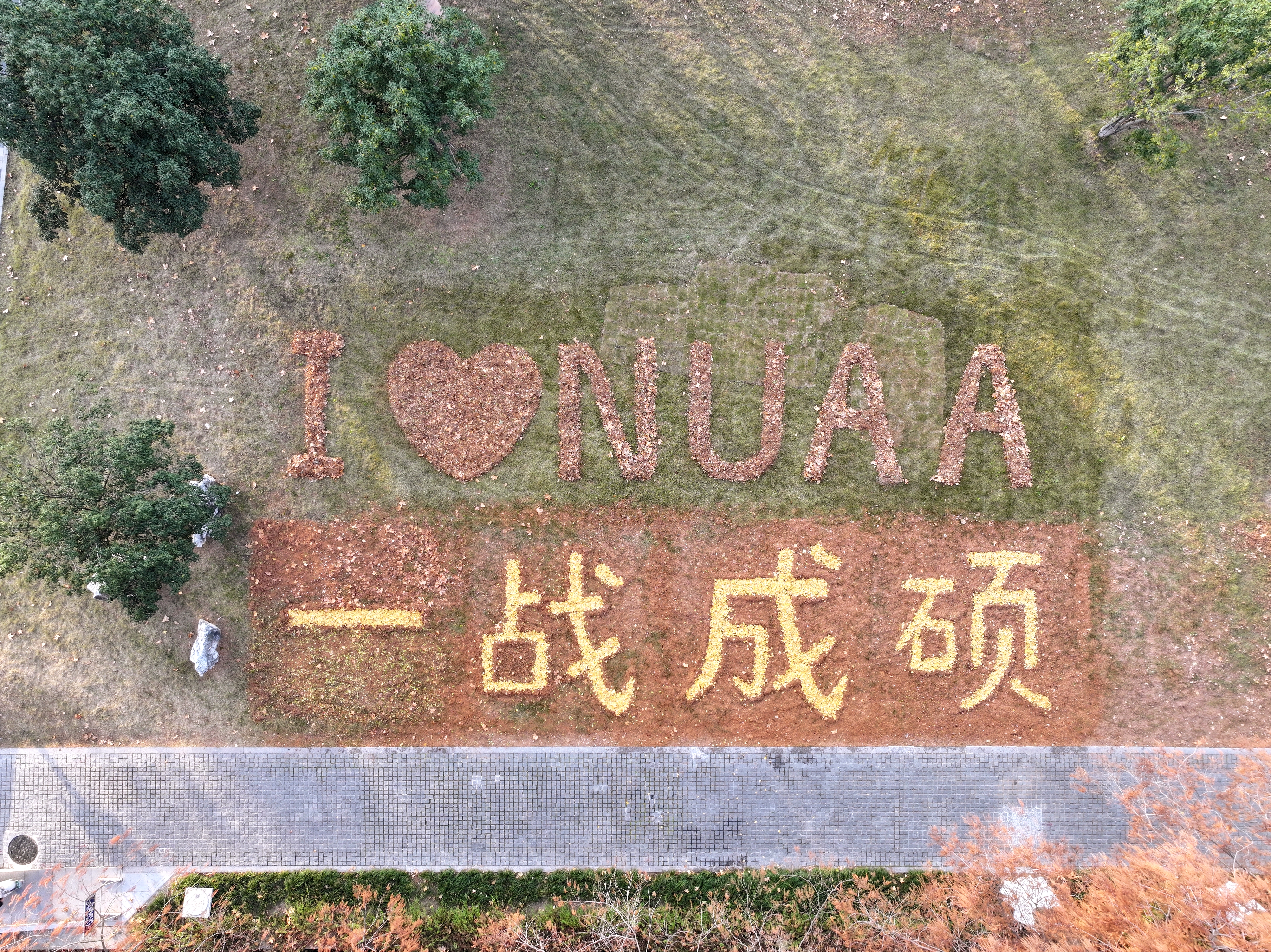 为助力考研学子舒缓备考压力、提振迎考信心,校园服务中心组织人员于南京两校区以草坪为画布、以指尖为画笔,悉心铺陈出“一战成硕”“一研为定 未来可期”等暖心字样,为奋斗逐梦的学子送上真挚祝愿。