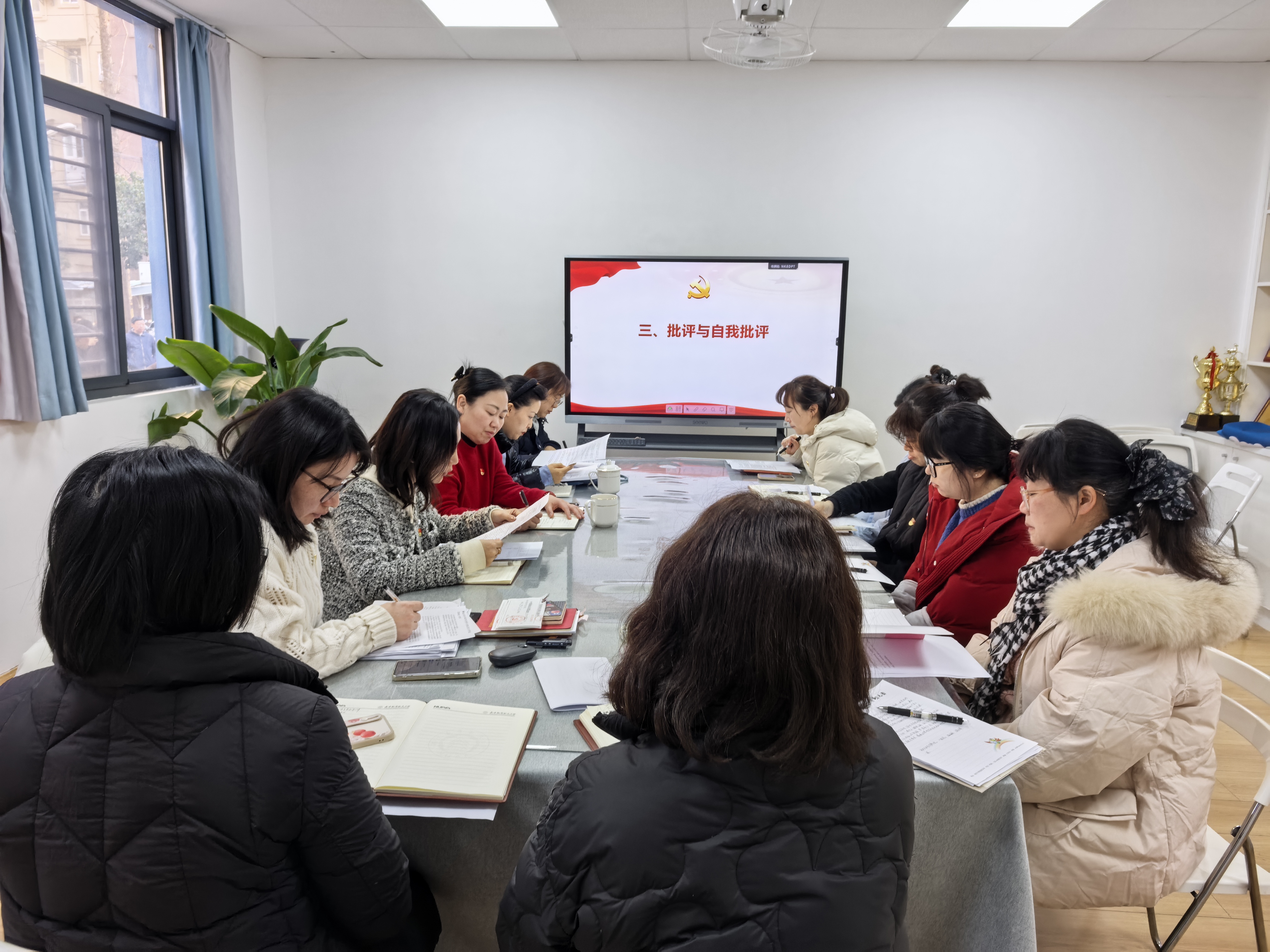 为深入学习贯彻习近平新时代中国特色社会主义思想和党的二十届四中全会精神,严格落实新时代党的建设总要求,切实加强党支部标准化规范化建设,强化党员教育管理,提升支部凝聚力和战斗力,根据上级党组织统一部署要求,3月10日,幼教中心党支部召开2025年度组织生活会暨民主评议党员大会。会议由支部书记陈慧云主持,全体党员参加,后勤保障部党委委员颜萌到会指导。